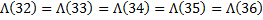 And as such , the value for the [ Lamda-of-(M) ] function remains constant / unchanged for the numbers [ 32 ] thru [ 36 ] .