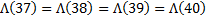 And as such , the value for the [ Lamda-of-(M) ] function remains constant / unchanged for the numbers [ 37 ] thru [ 40 ] .